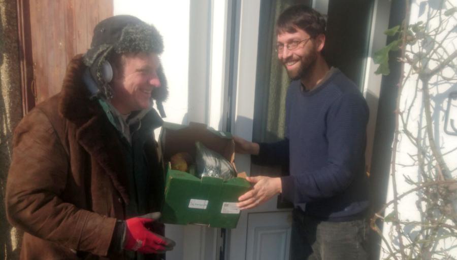 We supply a £20 (9 items)or a £26.50 (12 items) veg box to your door in the Oxford, Wheatley and Thame area. We deliver to your door on Fridays. Delivery is by Andy's eco-friendly pedal-powered trike or Steve's electric trike in Oxford. Other areas are reached by van.